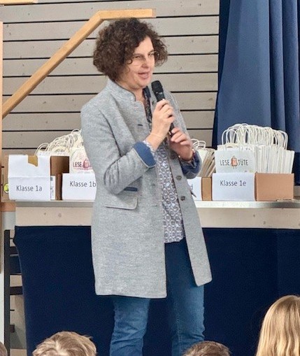 Frau Michaela Braun vom gleichnamigen Büchergeschäft in Wolnzach besuchte die Grundschule Wolnzach